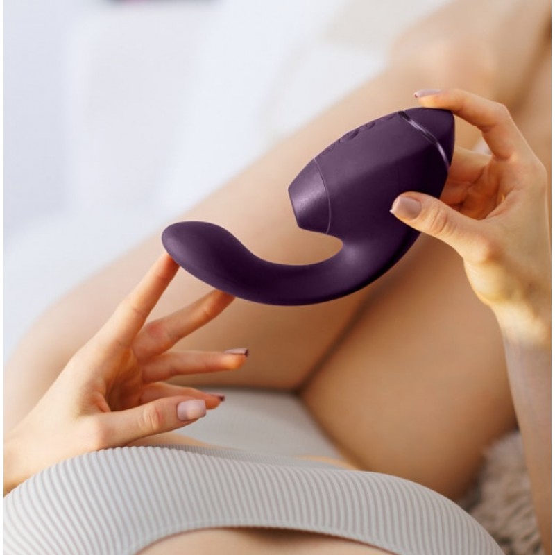 Womanizer Next Duo — передовой двойной стимулятор, объединяющий технологию 3D Pleasure Air и Dynamic Dimension Drive от Womanizer с глубокими вибрациями точки G от We-Vibe. Устройство создано для нового уровня комбинированных оргазмов — более естественных, интенсивных и персонализированных.