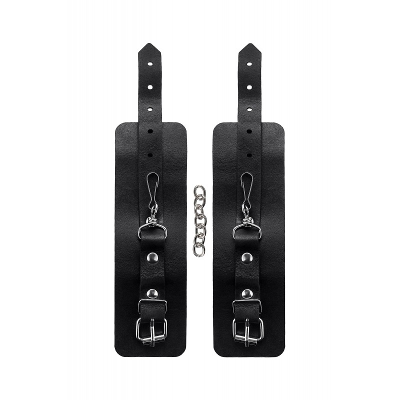 Однослойные кожаные наручники могут стать стильным аксессуаром на «свободных» руках, но могут послужить вашим целям и фантазиям по своему прямому назначению. Наличие двух карабинов и колец позволяет использовать изделие как раздельно – аксессуар-манжеты, так и как наручники для фиксации. К широким металлическим кольцам также можно присоединить и другие аксессуары при помощи карабинов.