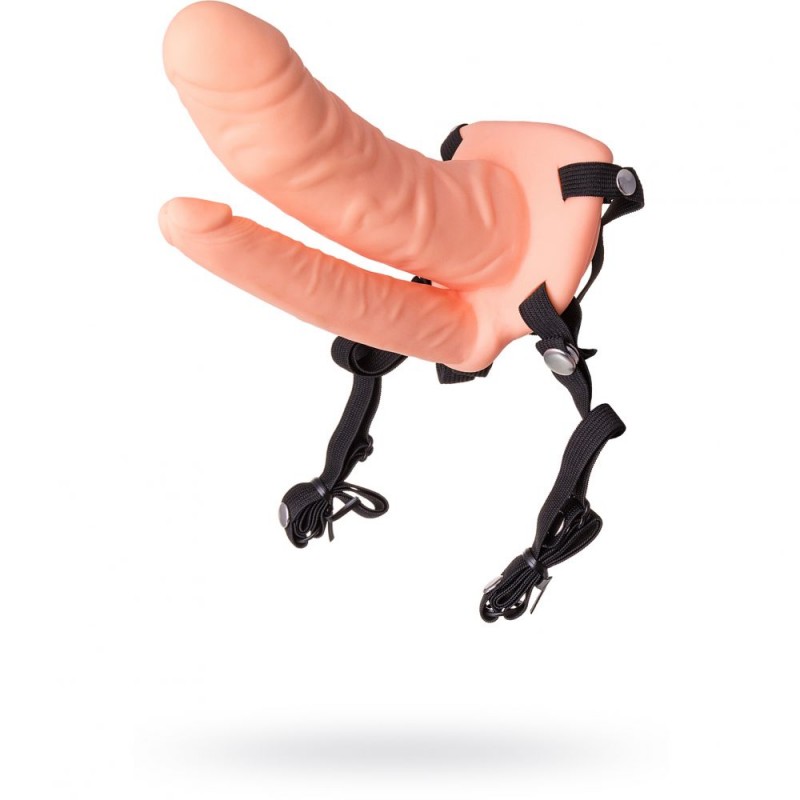 Его рабочая часть состоит из двух реалистичных фаллосов разного размера, предназначенных для одновременного вагинального и анального проникновения. Большой фаллос полый внутри, поэтому если страпон использует мужчина, он может просто надеть его на половой член.