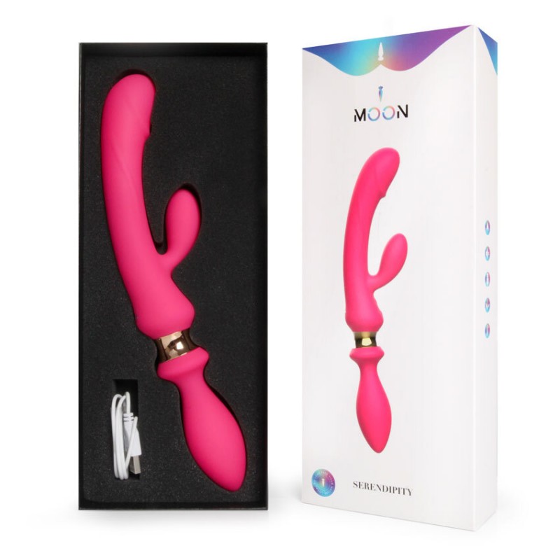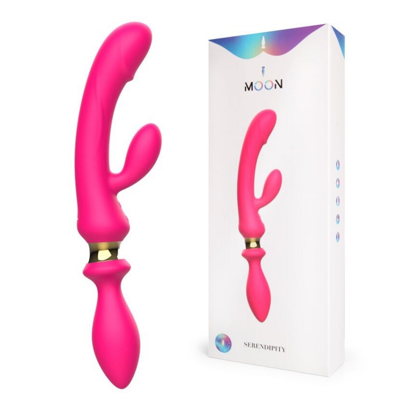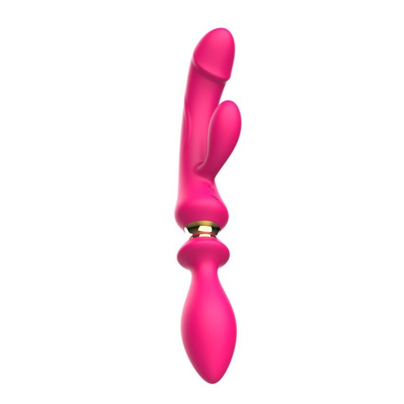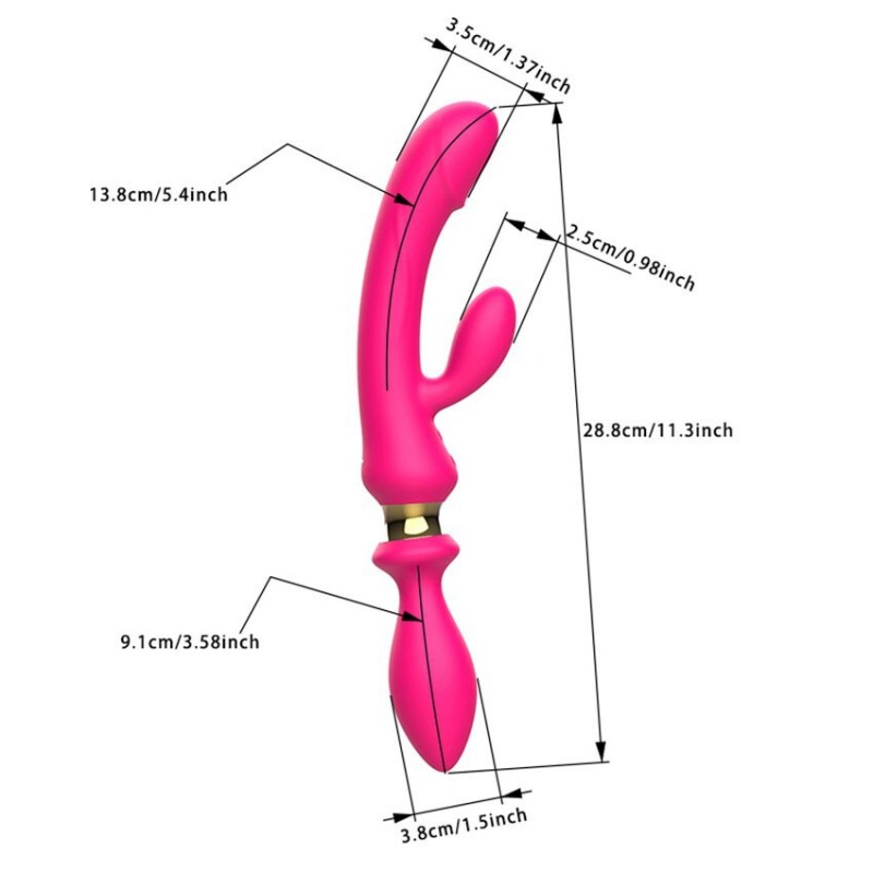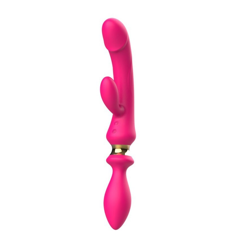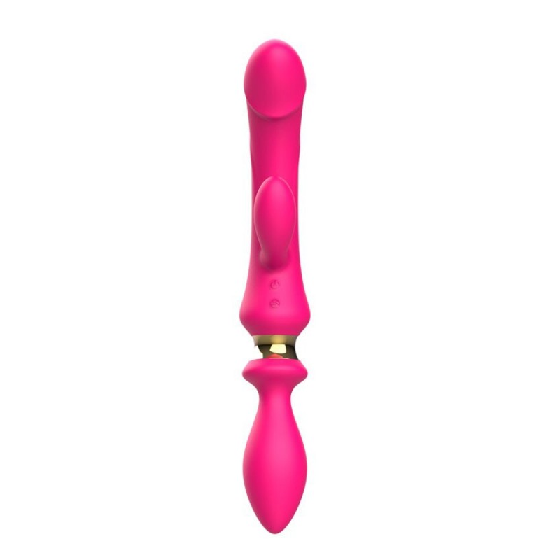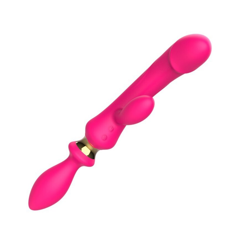 Одна сторона секс-игрушки представляет собой вибратор с специальным отростком для стимуляции клитора, другая – анальную втулку.