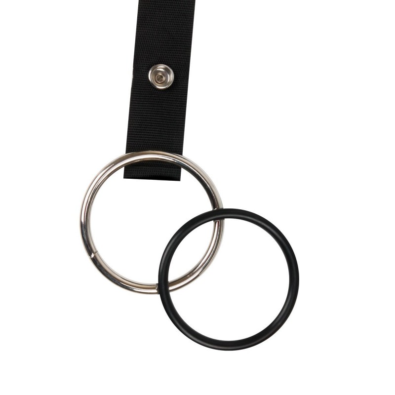 Присоска надёжно удерживает изделие на ровной поверхности. Размер ремешков можно регулировать с помощью застёжек. Ремешки имеют заклёпки, позволяющие расстёгивать их и менять кольца. Тканевая накладка способствует более комфортной эксплуатации страпона и препятствует натиранию кожи.