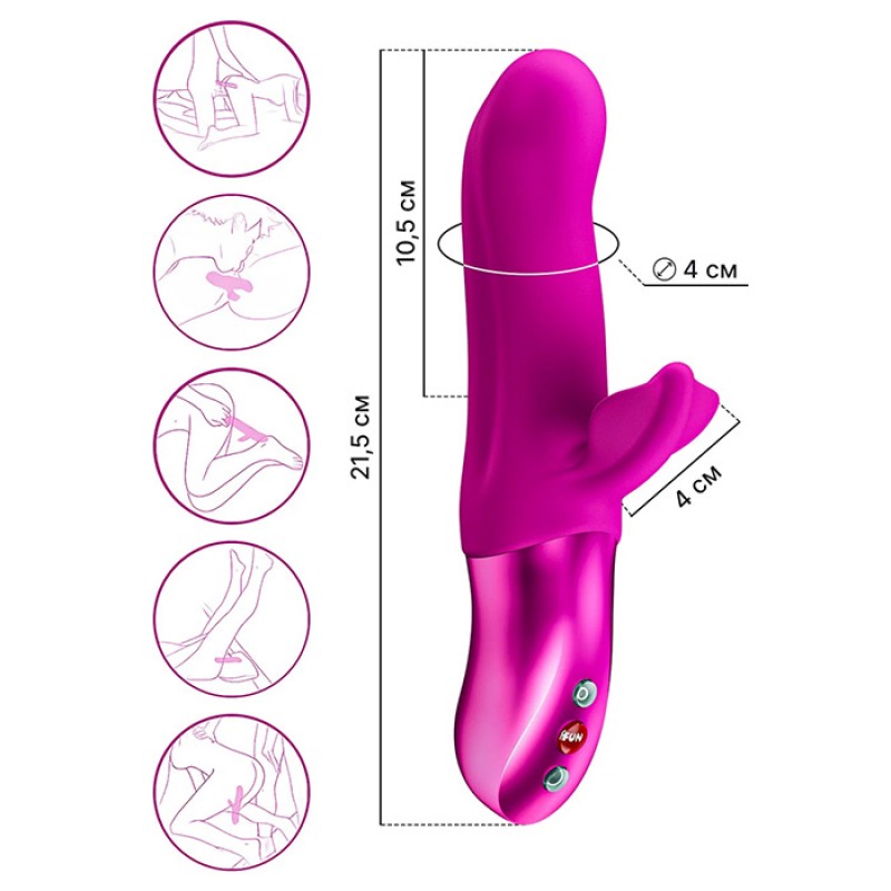 Больше, чем просто игрушка – революция в удовольствии! BI STRONIC FUSION – это нечто большее, чем просто игрушка: глубокие, реалистичные поступательные движения и интенсивная вибрация – непрерывные ощущения с каждым нажатием. Пульсирующее движение оказывает волшебное воздействие на вашу точку G, а изящный клиторальный стимулятор с крылышками одновременно ласкает клитор и половые губы. Длина 22 см, диаметр 4 см, сужающийся наконечник обеспечивает целенаправленную стимуляцию.