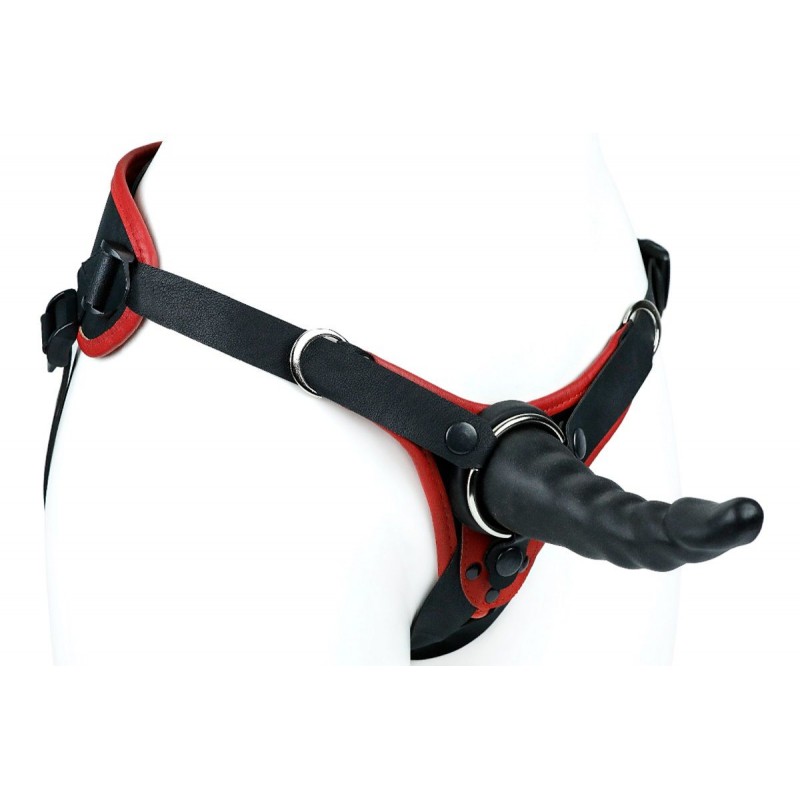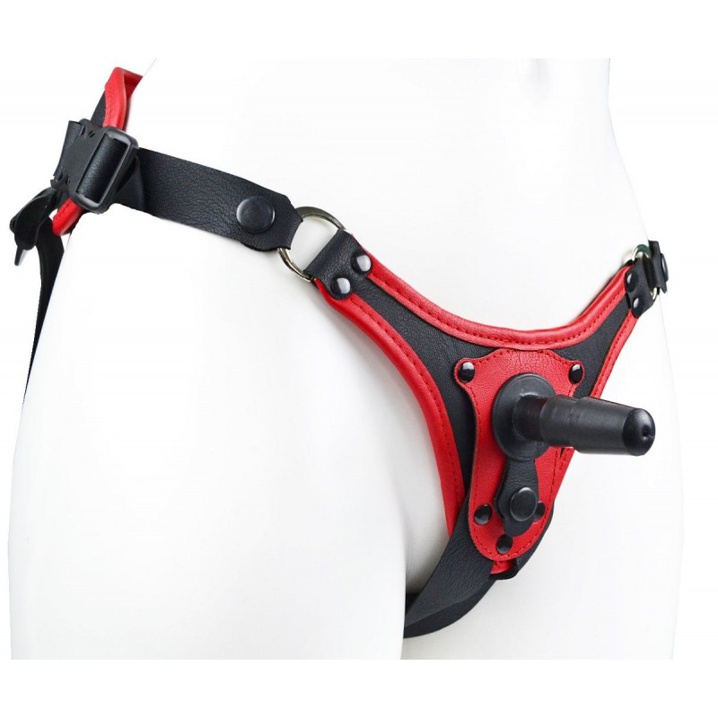 Можно зафиксировать кольцом любой фаллоимитатор на присоске (2 кольца в наборе комплекта с разными диаметрами). Для смены колец – необходимо расстегнуть кнопки ремней вокруг отверстия и поставить подходящее по размеру кольцо.