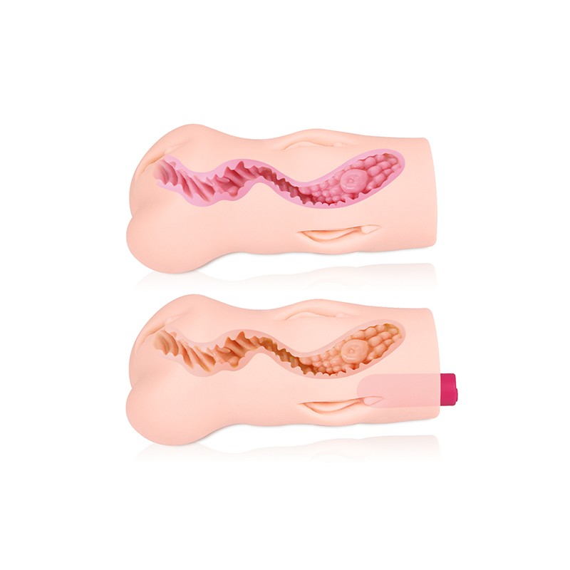 Крупный мастурбатор с маленькими вагинами на внешней стороне, с винтовым S-образным отверстием и точкой G и вибропулей.