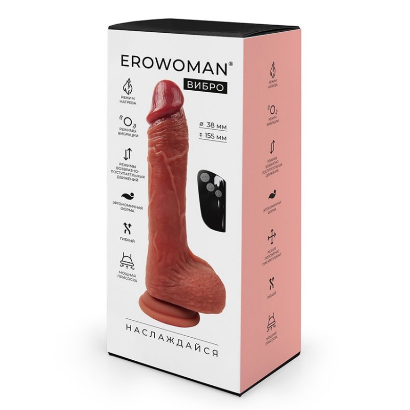 Вибратор с поступательными движениями Erowoman является по сути компактной секс машиной, ведь он способен имитировать глубокие фрикции в различных режимах вкупе с вращением, нагревом и мощной вибрацией! Игрушка выполнена из бархатистого силикона и когда принимает температуру тела становится похожа на настоящего неутомимого любовника. Модель оборудована надежной присоской, что позволяет зафиксировать ее на любой ровной поверхности, будь то стена или пол. Она идеально подходит для анальной или вагинальной стимуляции. Дополнительное удобство обеспечивает пульт дистанционного управления.