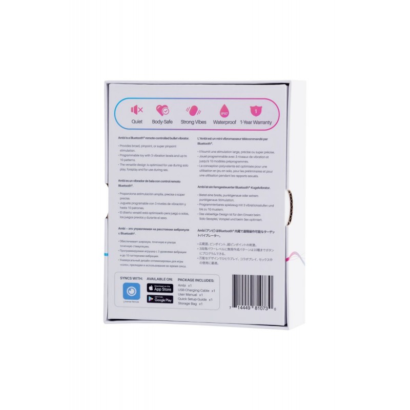 Ambi - анатомически идеальная вибропуля, которая повторяет изгибы женского тела и создана в первую очередь для использования во время секса. Вибропуля предназначена для одиночной игры, использования во время секса и совместный опыт для пар на длинной дистанции. Оборудование полностью оптимизировано для публичных игр, поэтому оно мощное, но тихое. Управление реализовано при помощи приложения для смартфона